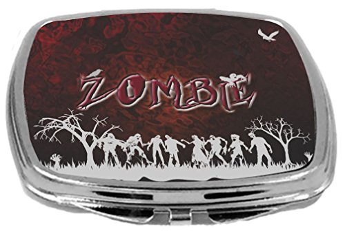 Rikki Knight Compact Mirror, Zombies Grey Silhouettes On Red