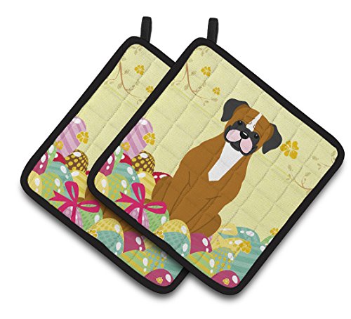 Caroline's Treasures Easter Eggs Flashy Fawn Boxer Pair of Pot Holders, 7.5HX7.5W, Multicolor
