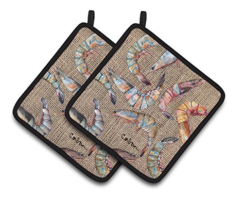 Caroline's Treasures Shrimp Pair of Pot Holders 8738PTHD, 7.5HX7.5W, Multicolor