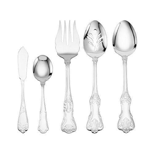 - 5-piece hostess set containing: 1 serving spoon, 1 pierced serving spoon, 1 serving fork, 1 sugar spoon and 1 butter spreader