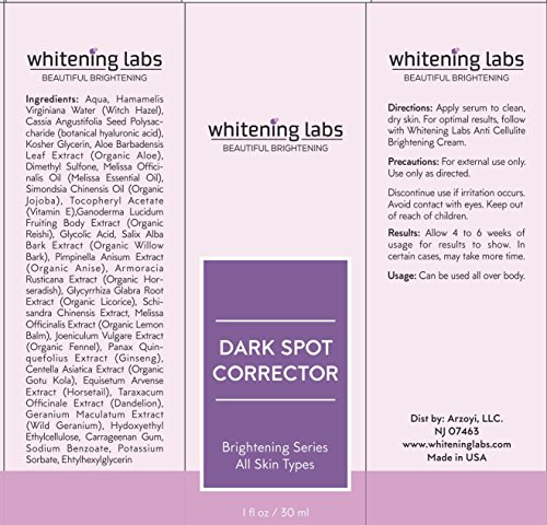 -. Feature : ✔ # 1 DARK SPOT CORRECTOR - Made in US with highest grade ingredients to deliver maximum gains. / ✔ EFFECTIVE - Highly Potent and effective Dark Spot Corrector with Skin Whitening properties. Does not contain Hydroquinone. Our Dark Spot Corrector can be used for treatment of age spots, dark spots, liver spots, and brown spots. / ✔ NECK, FACE, HANDS - Multi-purpose dark spot corrector with skin whitening properties packed full of wholesome goodness can be used on your face, hands, skin and has miraculous skin lightening effect. / ✔ SAFE INGREDIENTS - Our revitalizing dark spot corrector is lovingly crafted with the highest quality yet sustainably sourced ingredients to provide skin lightening properties. We strongly opposes all forms of animal testing; This product is naturally free from silicones, parabens, additives, fillers and alcohol