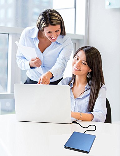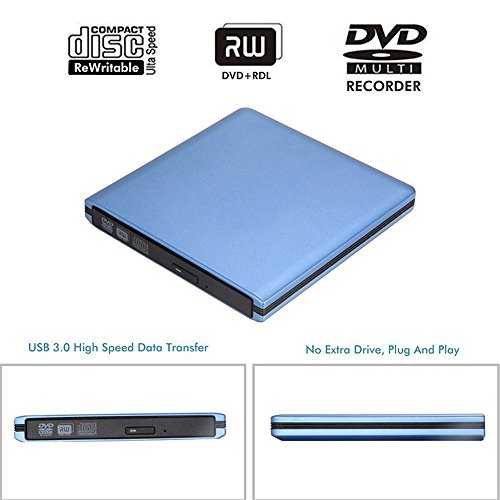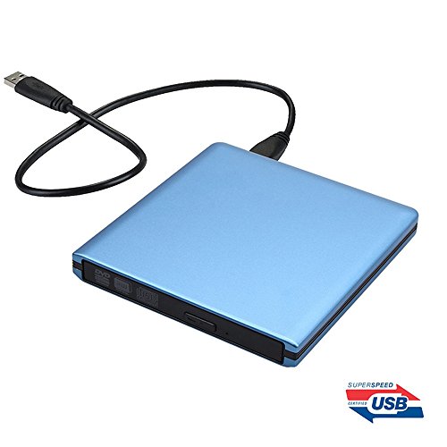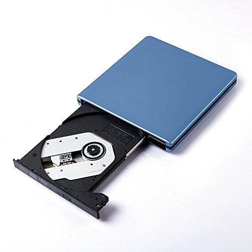 YAHEY External DVD Drive USB 3.0 Ultra Slim External CD/DVD-RW Burner Writer Player optical drive for mac, Windows and Linux OS for player CD/ DVD Read/ Writer / Rewriter (Blue)