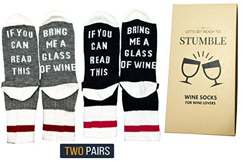 Premium Quality Wine Socks - Give the perfect gift with the perfect box. “If you can read this, bring me a glass of wine”. Two pairs of cozy cotton funny...