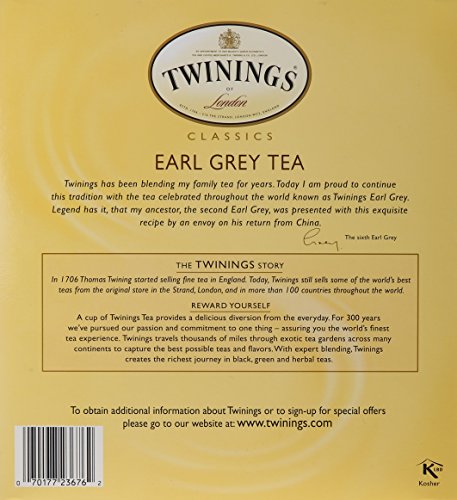 Twinings of London Earl Grey Loose Tea is a fine black tea expertly blended with the citrus fruit flavor of bergamot to deliver an uplifting tea with a unique floral aroma and refreshing taste.