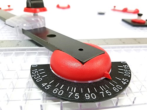 The COMPASS DIAL and RESTS, resembling beetles, provide ease of cutting from either side of the work surface, or a straight cut perpendicular from the base ruler.