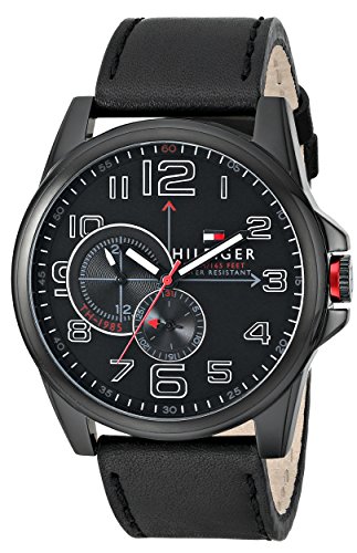 -. Binding : Watch -. Brand : Tommy Hilfiger -. Color : black -. Department : mens -. EAN : 0885997110624 -. Feature : Quartz movement / Case diameter: 46 mm / Semi-gloss dial with 2 subdials displaying day and 24 hour clock / Durable mineral crystal protects watch from scratches / Water resistant to 165 feet (50 M): suitable for swimming and showering -. IsAdultProduct : 0 -. Label : Tommy Hilfiger -. Manufacturer : Tommy Hilfiger -. Model : 1791005 -. MPN : 1791005 -. PackageQuantity : 1 -. PartNumber : 1791005 -. ProductGroup : Watch -. ProductTypeName : WATCH -. Publisher : Tommy Hilfiger -. ReleaseDate : 2014-04-11 -. Studio : Tommy Hilfiger -. Title : Tommy Hilfiger Men's 1791005 Analog Display Japanese Quartz Black Watch -. UPC : 885997110624