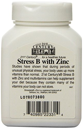 -. Binding : Health and Beauty -. Brand : 21st Century -. EAN : 0740985223314 -. Feature : Studies have shown that during periods of unusual physical stress. / Body uses up more vitamins than normal. / Contain many of the vitamins body cannot store. -. IsAdultProduct : 0 -. Label : 21st Century -. Manufacturer : 21st Century -. NumberOfItems : 2 -. PackageQuantity : 2 -. ProductGroup : Health and Beauty -. ProductTypeName : HEALTH_PERSONAL_CARE -. PublicationDate : 2011-01-21 -. Publisher : 21st Century -. Studio : 21st Century -. Title : 21st Century Stress B with Zinc Tablets, 66 Count (Pack of 2) -. UPC : 740985223314