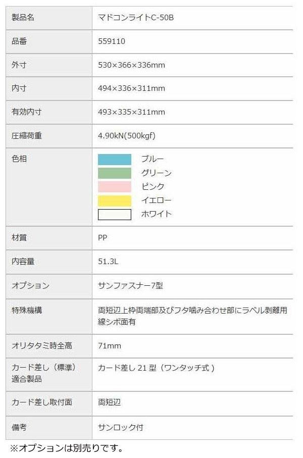 透明窓で中身が分かる折りたたみコンテナー☆窓の周りがフレーム構造になっているため、内容物の視認性と優れた圧縮強度、耐衝撃性を実現しました。 製造国:日本 ※サプライヤー直送品  ご注文後2~3営業日後の出荷となります【商品名】三甲 サンコー マドコンライトC-50B 559110 イエロー