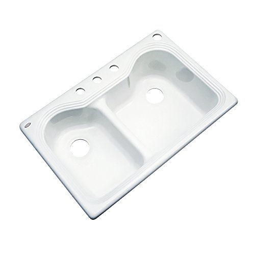 Dekor Sinks 56400 Buckingham Double Bowl Cast Acrylic Kitchen Sink-4 Hole, 33", White