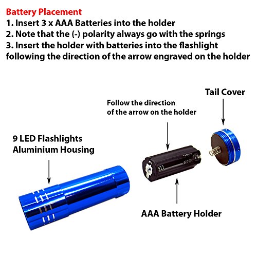 ★ Package: 3 Mini LED Flashlights with Lanyard (Red, Silver & Blue), Battery Holders and Travel Case. Batteries Not Included