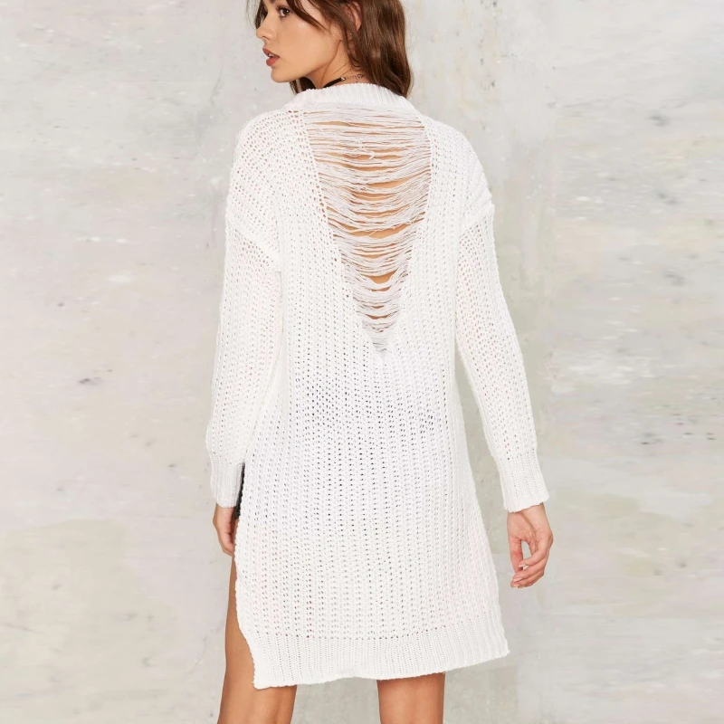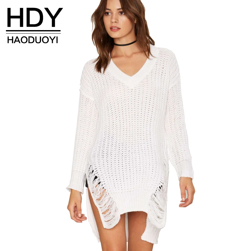 | HDY Haoduoyi Fashion Split Knitted Tops Women Long Sleeve Female Long Pullover Tops Hollow Out Solid V-neck White Sweater | |||||||||||||||||||||||||||||||||||||||