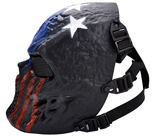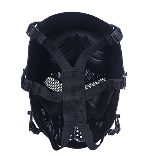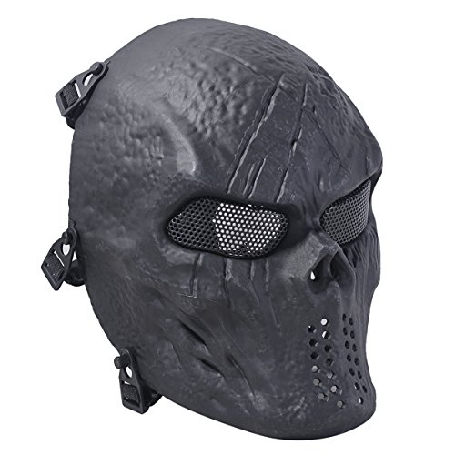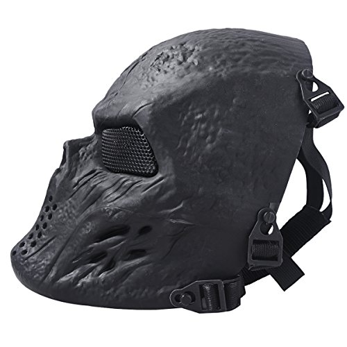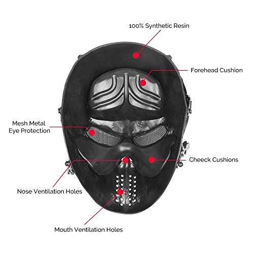 -. Feature : COXEER BRAND PRODUCT made of imported material, which is environment-friendly, poison free and no smell. The material is very thick and very protective during airsoft game. / FULL SIZE mask that fits an adult face. Black metal screens hide your eyes and the rest is plastic. / COOL DESIGNl and will look great with finished costume. The straps are easy to adjust so you can have it as tight or as loose as you want. It is also comfortable while wearing. Great for airsoft, hunting, war game and military use, Halloween party / LIGHT WEIGHT for extended wear. Inside there are a couple different areas of padding, on the forehead and for the nose and cheeks. They're comfortable enough. / MULTIPLE STRAPS for a tight fit if you use this for airsoft or other outdoor activities that require a lot of movement. The multiple padded points on the inside provide for longer more comfortable use periods.The plastic has many holes allowing for great ventilation. The mask is very comfortable to wear, with the rubber padding on the inside. It is adjustable allowing for a great fit. It provides protection to the entire face.