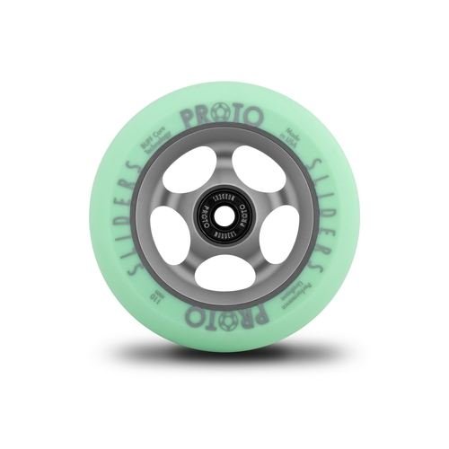 Studio : Proto Publisher : Proto Binding : Misc. Product Description Proto Faded Slider Wheels are 110mm scooter wheels. Scooter wheels come in a variety of sizes, ranging from 100mm to 125mm. The larger the wheel, the faster it is. 100mm wheels are typically entry level wheels while 125mm are geared towards the pros who need speed for big air tricks. Faded Slider Wheels are compatible with forks and decks that fit 110mm wheels. Scooter wheels not only come in a variety of sizes but also hardness. 86a polyurethane hardness, or durometer, indicates a softer wheel that will provide more grip than an 88a durometer wheel, which has a harder polyurethane that lends to durability and speed. Softer scooter wheels are typically better for park riding, while harder wheels are geared more towards street riding. 0
