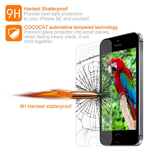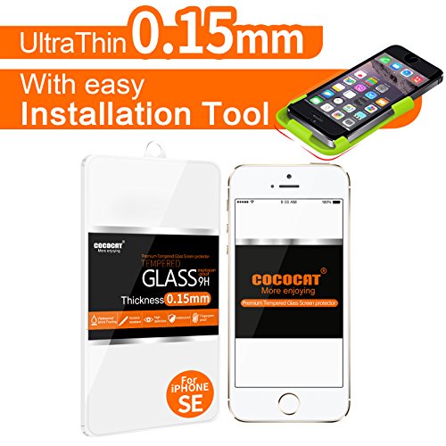 -. Title : iPhone SE Screen protector, COCOCAT [Tempered Glass][With easy Installation Tool] 0.15mm Ballistic Glass iPhone SE 5S 5 5C Glass Screen Protector Work with iPhone SE 5S 5 5C and Protective Case