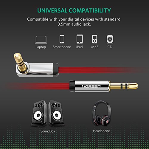 USE: Ugreen 3.5mm audio stereo cable 90 degree right angle can easily connect any of your 3.5mm audio port equipped iPod, iPhone, iPad, smartphone, Mp3 player or tablets to your car, portable wireless bluetooth speakers or home stereo, compatible with any digital devices with standard 3.5mm jack audio, like Beats Headphones, iPhone, iPods, Samung Galaxy, Laptop, Tablets, MP3 players, Cell Phones, Car/Home aux stereo, speaker etc.