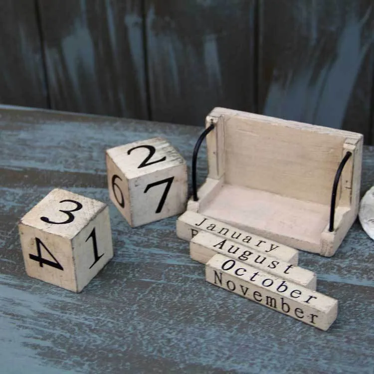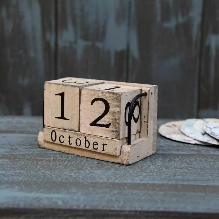 AIBEI-Wood Calendar Zakka Furnishing Articles Manually Small Desk Vintage Calendar Household Daily free Shipping Log Crafts Wood