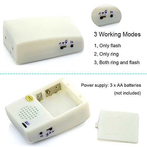 Features: ★ High quality ABS material with 7 color lantern flashing ★ When outside launcher press launchers also have a blue indicater light, the receiver will ring the choice of music, and colorful flash light. ★ Simple, wireless installation, no wires or cables required ★ Strong anti-interference ability, avoid interferences between neighbors ★ Adjustable volume and 16 different tones for your choice, effectively reminds you of the coming of guests or friends ★ Long distance transmission and high strength signal and sensitivity Specifications: * Transmitter: * Operating frequency: 315MHZ * Power supply: 1 AAA battery(included) * Receiver: * 1. Tones Kinds: 16 * 2. Operating frequency: 315MHZ * 3. Power supply: 3 x AA batteries (not included) * Controlled volume: 0-80dB * The doorbell size: receiver: 9 * 6.2 * 3.3mm Transmitter: 7.5 * 4 * 2 mm Package includes: * 1x 7 color lights flash + music doorbell * 1x Double faced adhesive tape Our products have been well tested, examined and packaged before sending off. Any problem please feel free to contact us first so that we can supply the best service for you.Feature