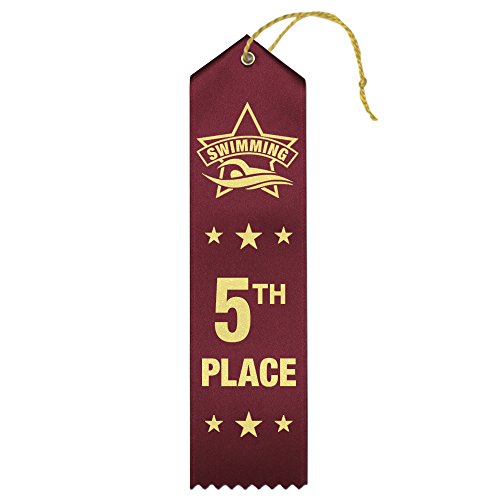 [Product Information]- PREMIUM QUALITY RIBBONS with a Swimming design- This bundle includes 25 Fifth Place Maroon ribbons total