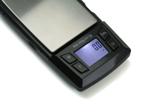 -. Feature : Integrated Overload Protection / Battery saving auto-off after 60 seconds of inactivity / Multiple Weighing Units: g, oz, ozt, dwt, ct, gn / 10 Year Limited Warranty / Weighs up to 650g in increments of 0.1g / Shock resistant cover doubles as a weighing tray / Back-lit LCD / Stainless Steel Platform / Auto-Zero Tracking