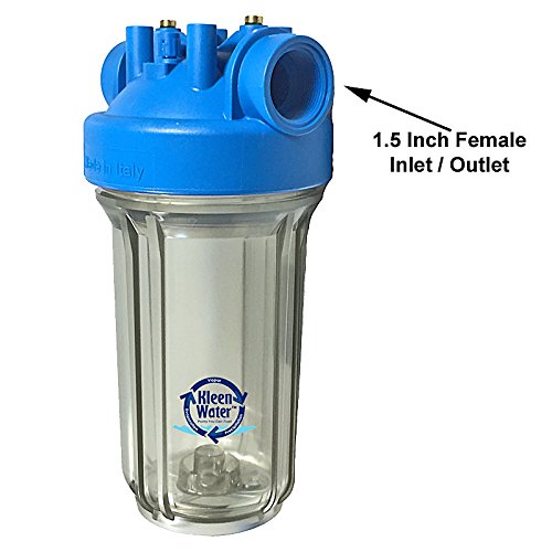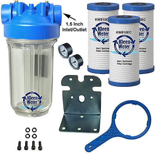 -. Title : KleenWater Complete Whole House Water Filter System - Transparent (Clear) Housing - 1.5 Inch Inlet/Outlet - 20 GPM with Bracket, Wrench and Three AP810 Cartridge Alternatives