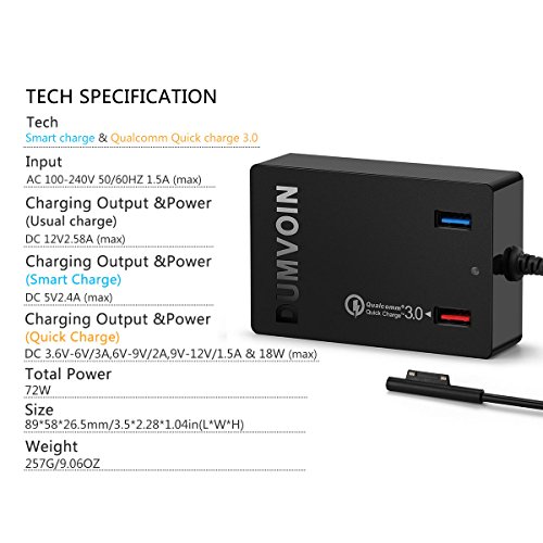 -Standard Microsoft Surface Pro 3/Pro4 i5 i7 Charger Exclusively designed for Microsoft Surface Pro 3/Surface Pro 4 Intel Core i5 i7 Tablet. This charger has over heating protection and short circuit protection.