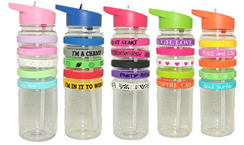UNIQUE & FUN - Removable silicone bands protects against breakage and fits on your wrist!! CREATE YOUR OWN COLLECTION! Flip spout & straw ensures spill-proof sipping while on the go. Easy twist off cap to add ice, orange or lemon wedges to your drink. Its also LEAK FREE/SPILL-PROOF