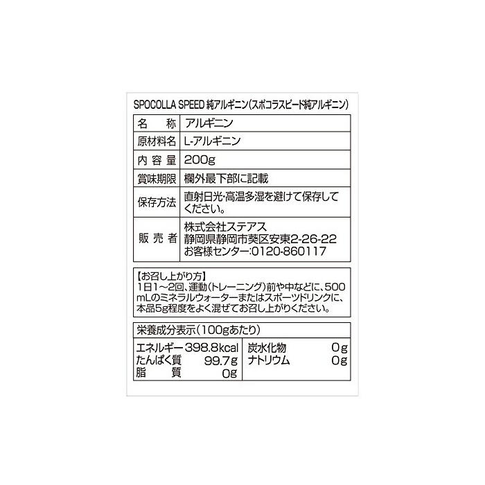 원본상품명: SPOCOLLA SPEED 純アルギニン 200g ??製造の高品質高純度