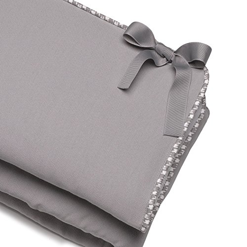 Studio : Liz and Roo Publisher : Liz and Roo Binding : Baby Product Product Description The storm gray rail teething cover will add a beautiful finishing touch to your crib, featuring a gray houndstooth trim and ribbon ties. This rail cover pairs perfectly with our gray houndstooth crib skirt. The rail teething cover is safely placed on the rail and secured through button holes with grosgrain ribbon ties, allowing air flow through the crib. With the rising popularity of convertible cribs, you'll want to protect your investment with a beautiful rail cover. Part of Liz and Roo's "Bumperless Bedding", the rail cover keeps your baby from chewing on wood, including the risks of splinters and paint. Our rail cover is 18" when flat and fits most standard cribs. Made in USA. 0