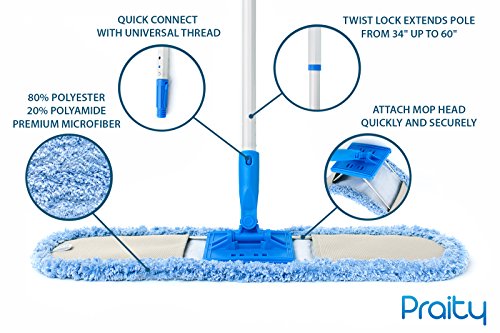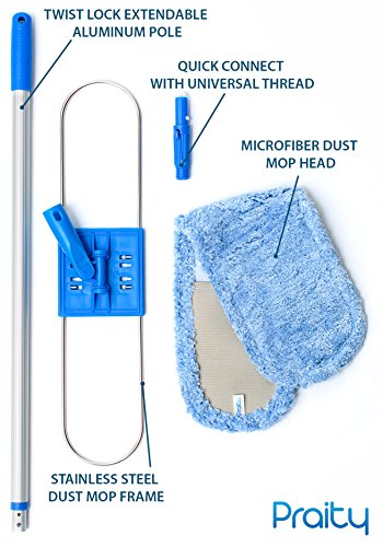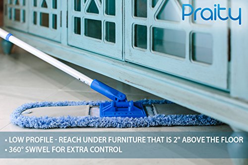 Professional Dust Mop By Praity Microfiber Cloth Dust Mop | With 24” x 6” Dimensions | Made With Eco-Friendly Materials | 60” Long, Adjustable Aluminum Handle | Machine Washable