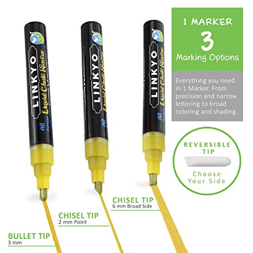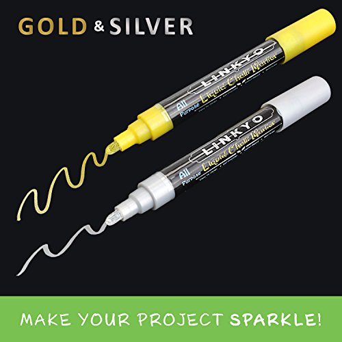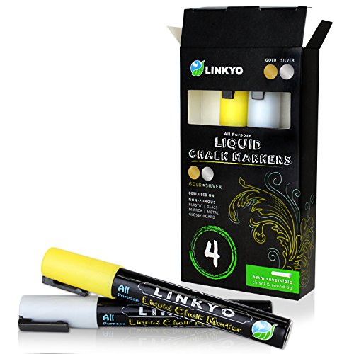 - Title : 4-Pack LINKYO Gold & Silver Chalk Ink Marker Pens - Erasable Artist-Quality Drawing Ink - Glass, Bistro, Windows, Whiteboard, Expo Meetings