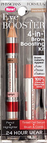 Innovative brow kit includes the essentials for perfectly defined brows: Brow Pencil: Universal shade fills, shapes and defines brows for a natural finish Highlighter: Luminous pencil highlights under your arches for an instant brow lift Tinted Brow Gel: Lightweight gel with a hint of color sets and perfects Brow Brush: Built-in brush and comb provides perfectly groomed brows.Feature