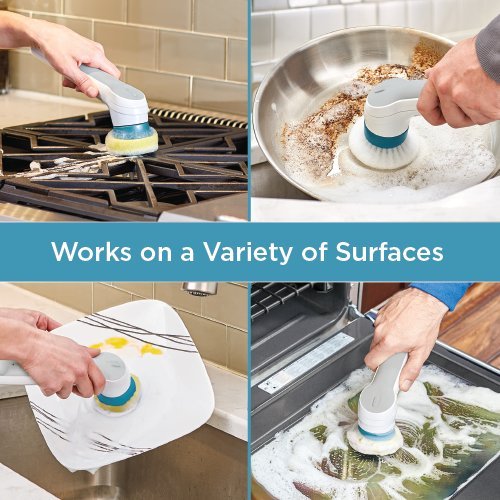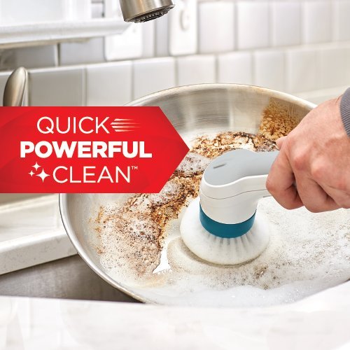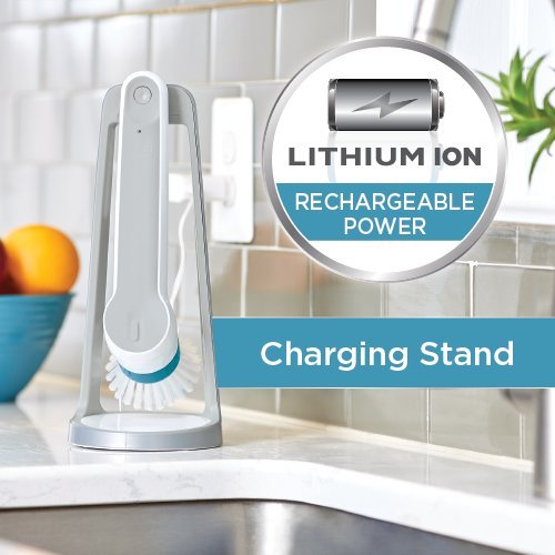 The BLACK+DECKER BHPC110 Grime buster Pro Rechargeable Power Scrubber with Charging Stand features a powerful rotating motion that cuts through tough dirt without bogging down, for fast and easy cleaning. It is compatible with a variety of dishwasher safe replacement heads ideal for cleaning surfaces all around the home; bristle brush, multi purpose, and heavy duty. The lithium ion battery provides long lasting rechargeable power. It has an extended handle that allows your hands to stay clear of grime, with a convenient stand that stores and charges your scrubber so it's ready when you need it. This scrubber has a durable design which provides long-lasting performance (2 year limited warranty). It offers a submersible design, with a comfortable grip and non-slip handle that makes it easy to use with wet hands. Includes: 1) BHPC110 Powered Scrubber unit, 1) Charging stand, 1) Jack plug charger, 1) Multi-purpose sponge, 1) Bristle brush (on unit).Feature
