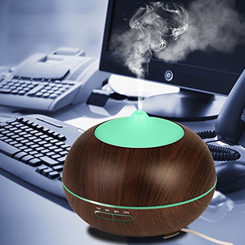 - Updated Version: Adopted ultrasonic technology, It's whisper-quiet,not interfere with your work or sleep.This aroma humidifier can hold up to 300ml with a Innovation bigger mist It can run up to 10 hours of continuous output. Stylish wood grain exterior brings a nice natural look to the humidifier.
