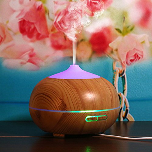 Gets Wood Grain 300ml Mist Humidifier Ultrasonic Aroma Essential Oil Diffuser with 7 Color Changing for Office Bedroom Yoga Spa 168.50x168.50x120mm (Brown,American standard)