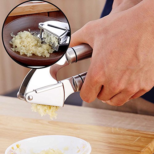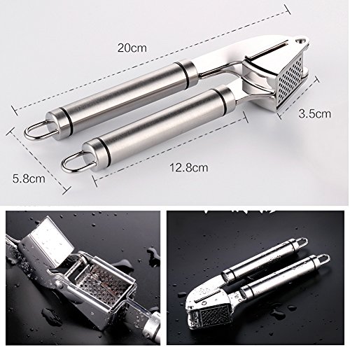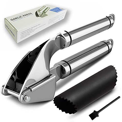 - 1. High Quality. Our garlic press is made from premium quality 18/8 stainless steel, so hand presser won't rust, bend, break or weaken at the joint even after frequent use. And the peeler tube from tough FDA approved silicone, so the cooking gadget will last as long as you need them.