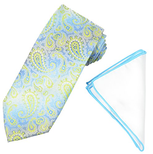 (Paul Malone)/Accessories/Ties/DIRECT FROM USA/Light Blue Paisley Men's Tie and Contrast Pocket Square Set