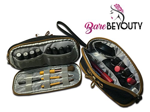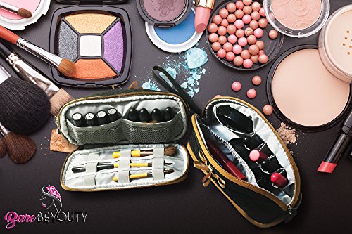 - IDEAL SPACING ON TOP- compartmentalized to keep makeup organized and easy to access; 4 lipstick pockets, 1 large elastic pocket for longer makeup, and 1 compartment for makeup compact
