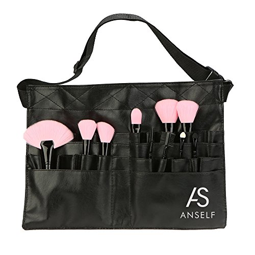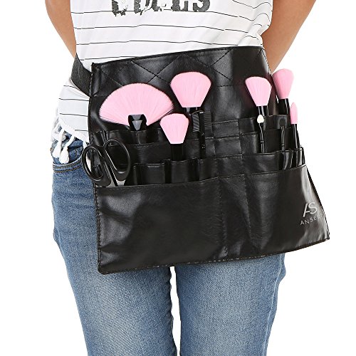 Anself PVC Professional Cosmetic Makeup Brush Apron Bag Artist Belt Strap Holder (Black)