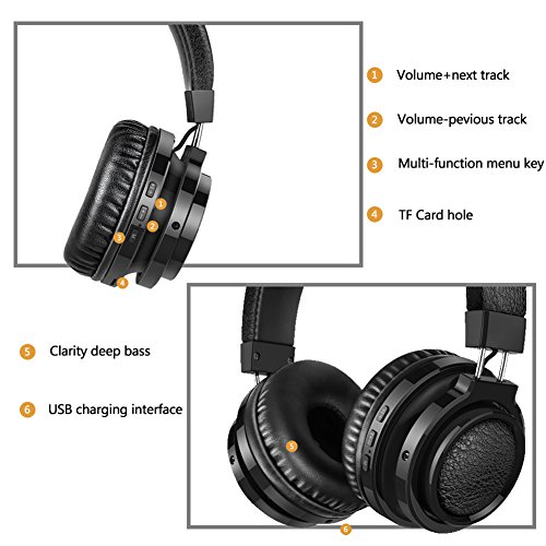 Superior Noise Cancelling and Hi-Fi Sound: Advanced 40mm large deriver and 4.1 bluetooth technology, 4.1 bluetooth connect seamlessly with all bluetooth enabled devices, large drivers offer you exceptional clarity, Hi-Fi sound, reinforced bass, built-in active noise reduction microphone bring you crystal loud song and clear communication experience.