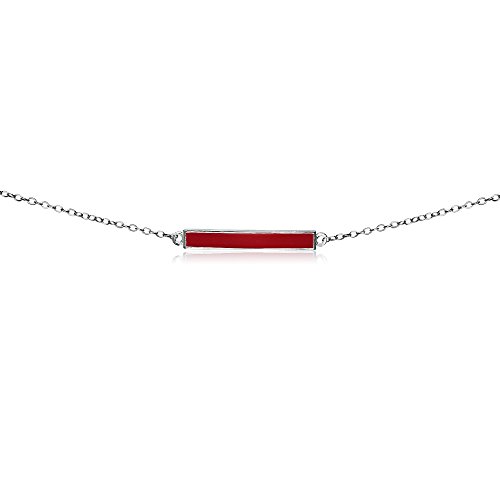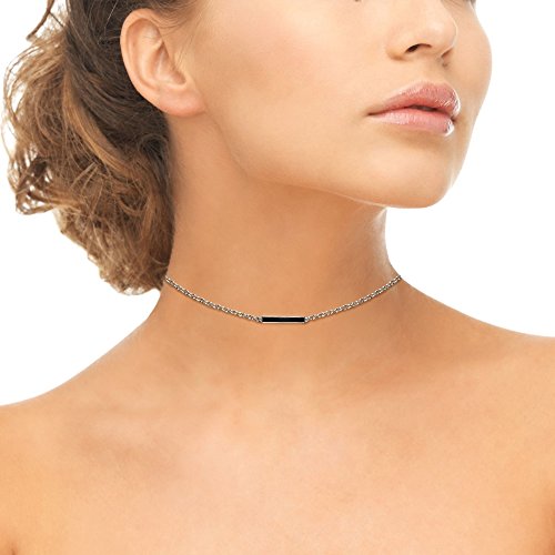 This beautiful choker features a polished horizontal black bar. The necklace is crafted of fine sterling silver and is secured by a spring ring clasp. The necklace includes a 13" rolo chain plus a 3" extender. It can be purchased as necklaces for women, necklaces for teen girls, chokers for women and chokers for teen girls.