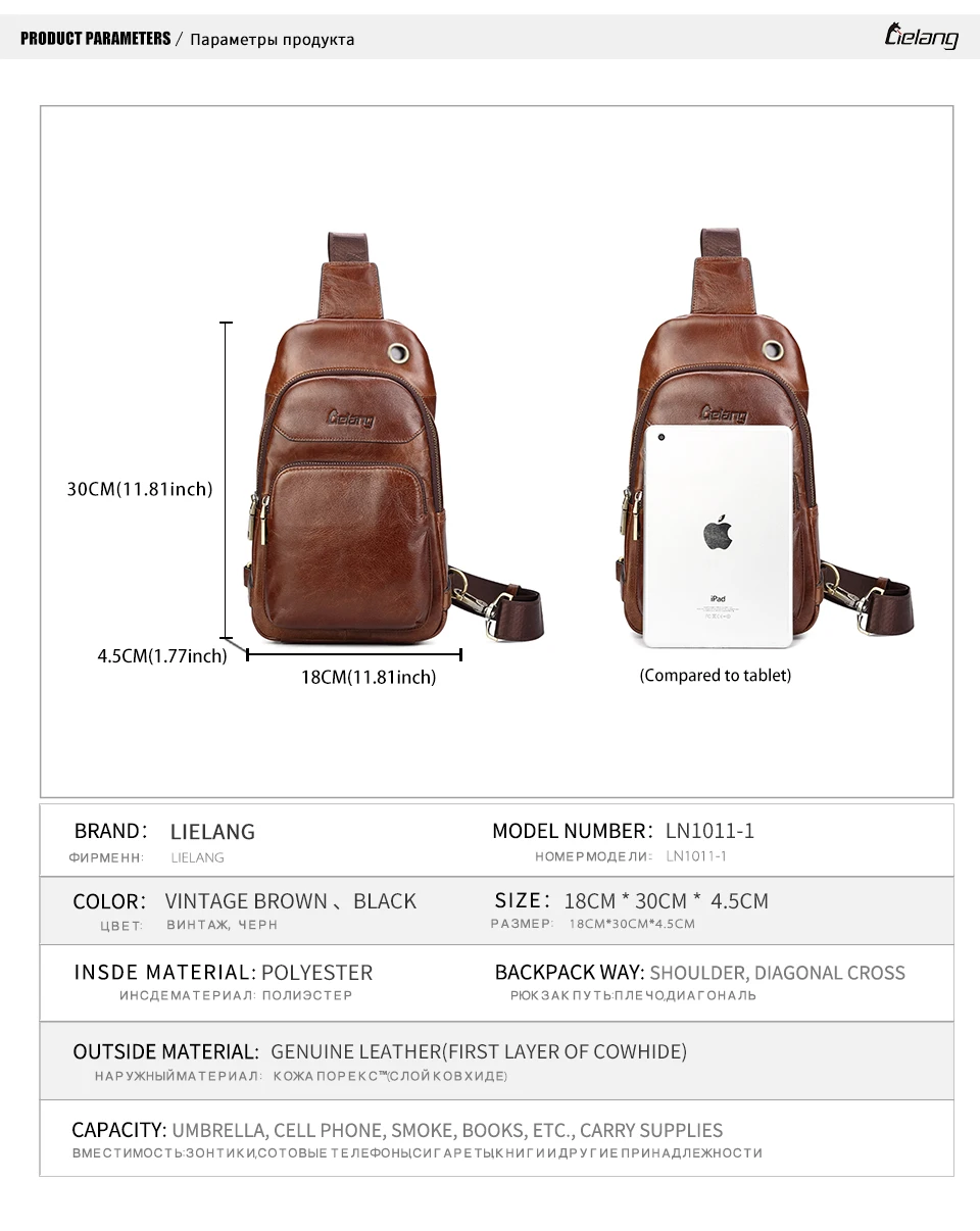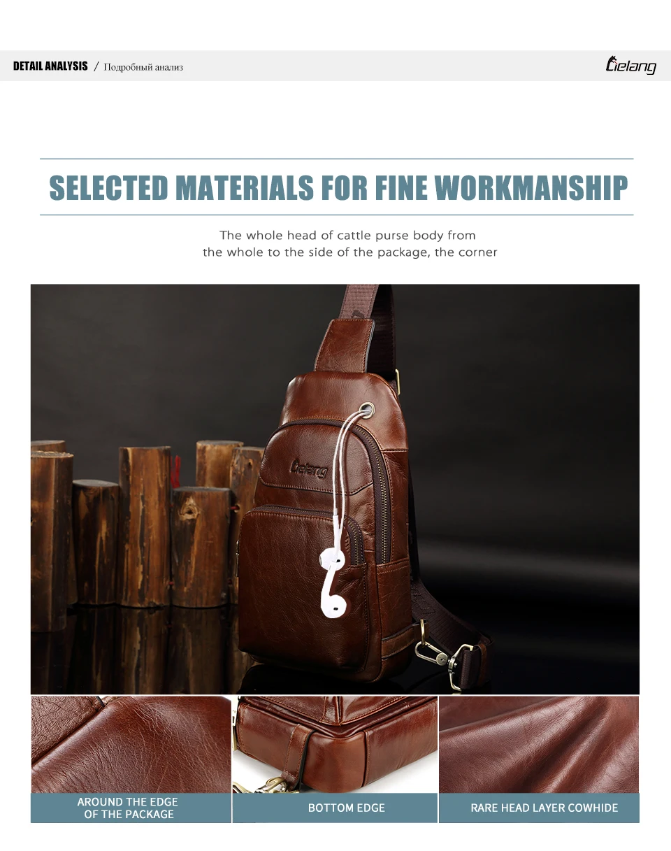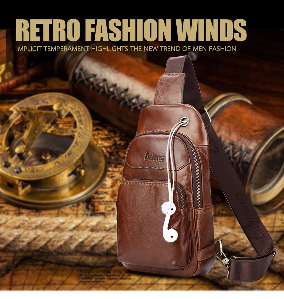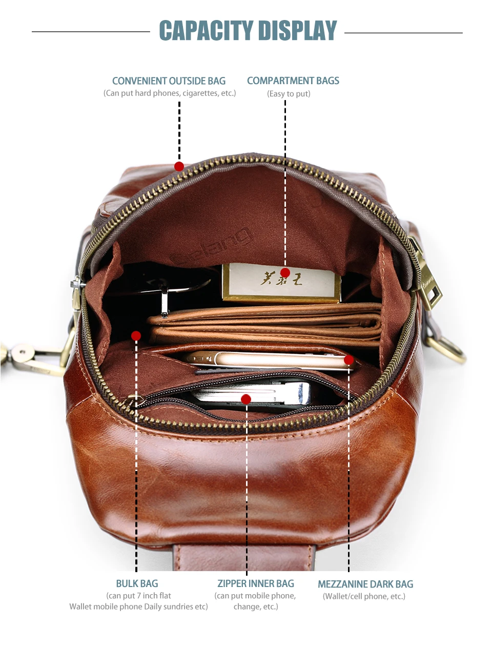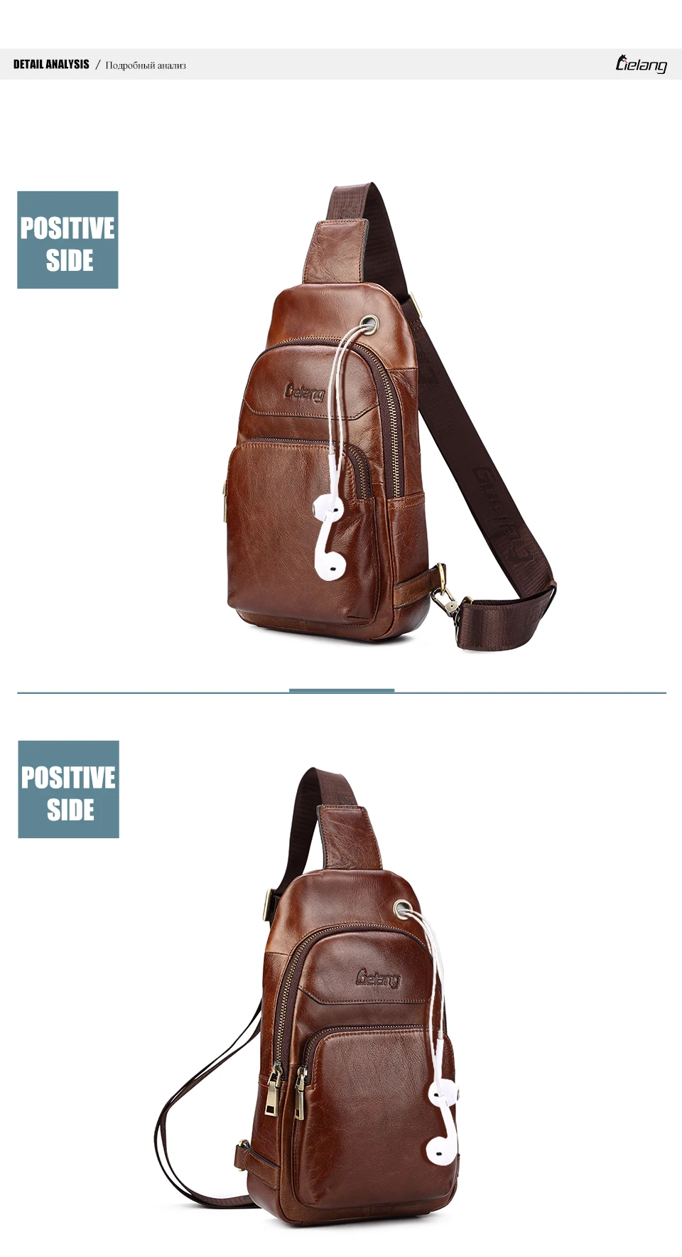 Item Design:Real Leather Men Chest Bag Messenger Bag