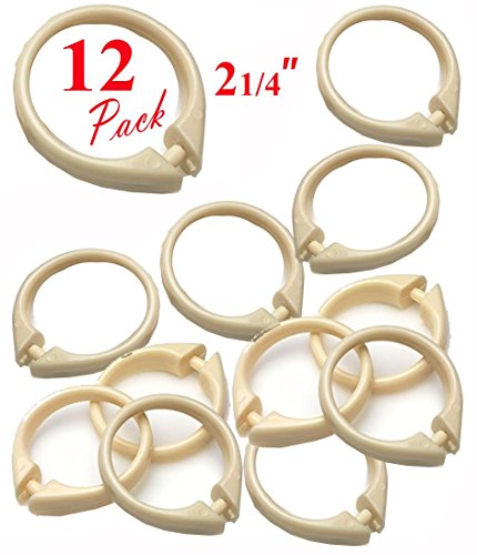 (Set of 12) Bone Shower Curtain Hooks, ‘’O’’ Snap Shower Curtain Rings, Plastic – 2’’ Diameter