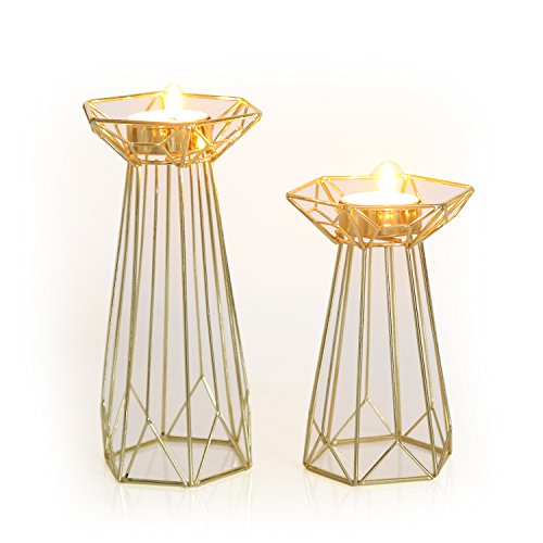 Homebeez Candle Holder, Standing Candle Holder Set of 2, Gold