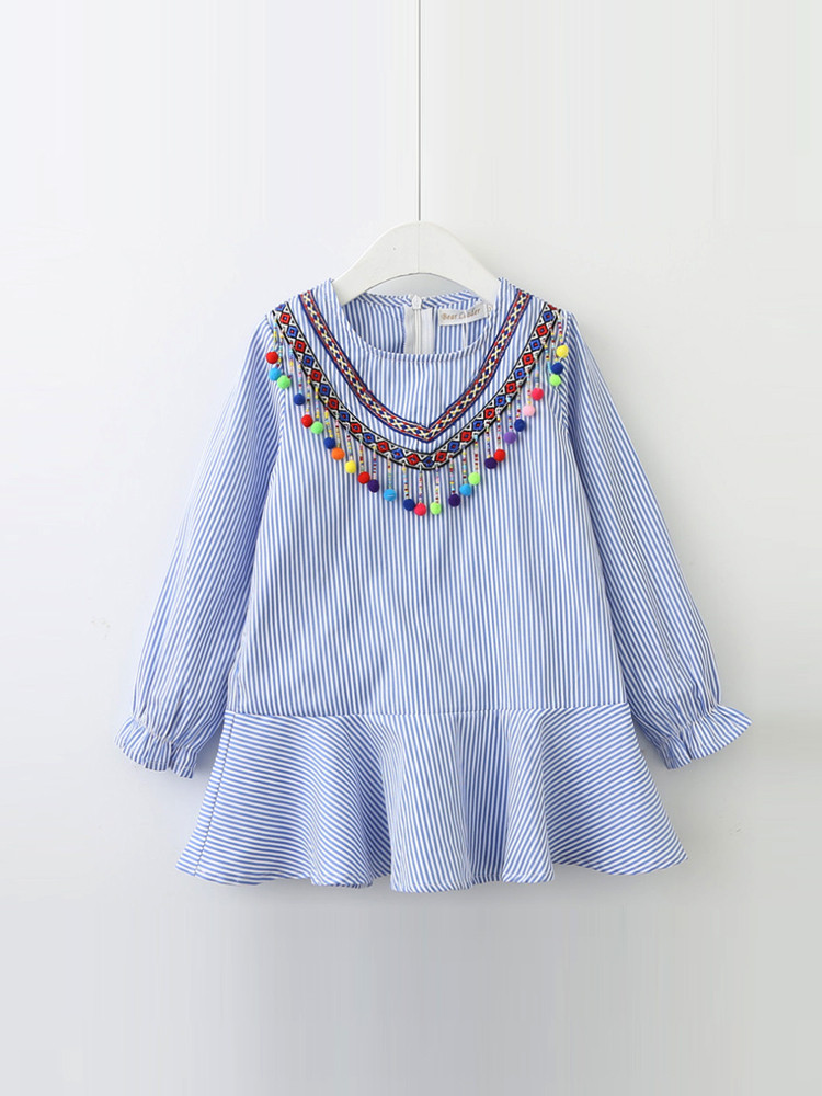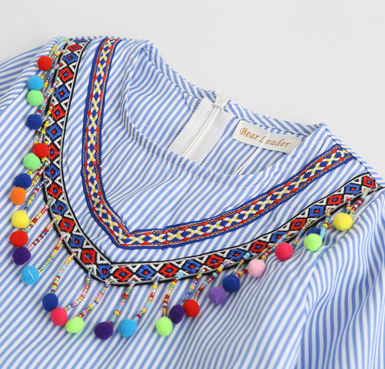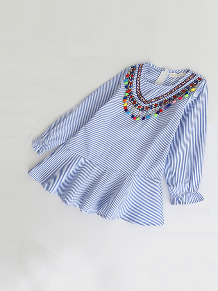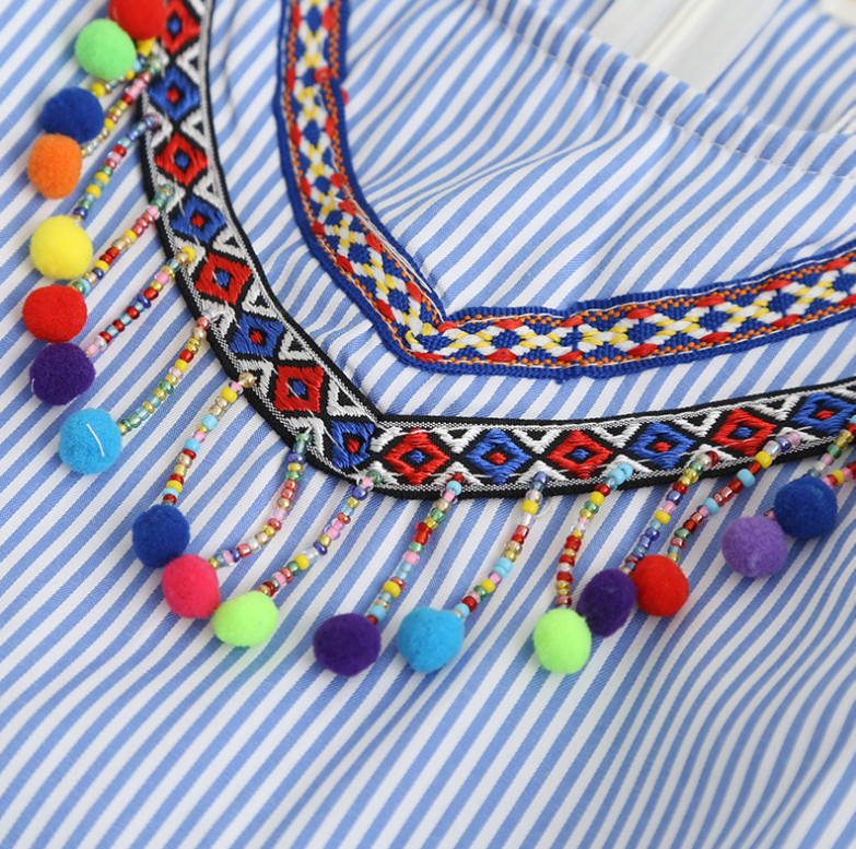 ♡시원해보이는 스트라이프 패턴의 원피스에요:D알록달록한 폼폼이와 자가드 무늬가 포인트되아,더욱 화사하고 컬러풀한 느낌을 주는데요,뒷 지퍼 여밈으로 입고 벗기도 편안한 원피스!지금부터 쭉~ 편안하고 예쁘게 입혀주세요:D적극추천드립니다!