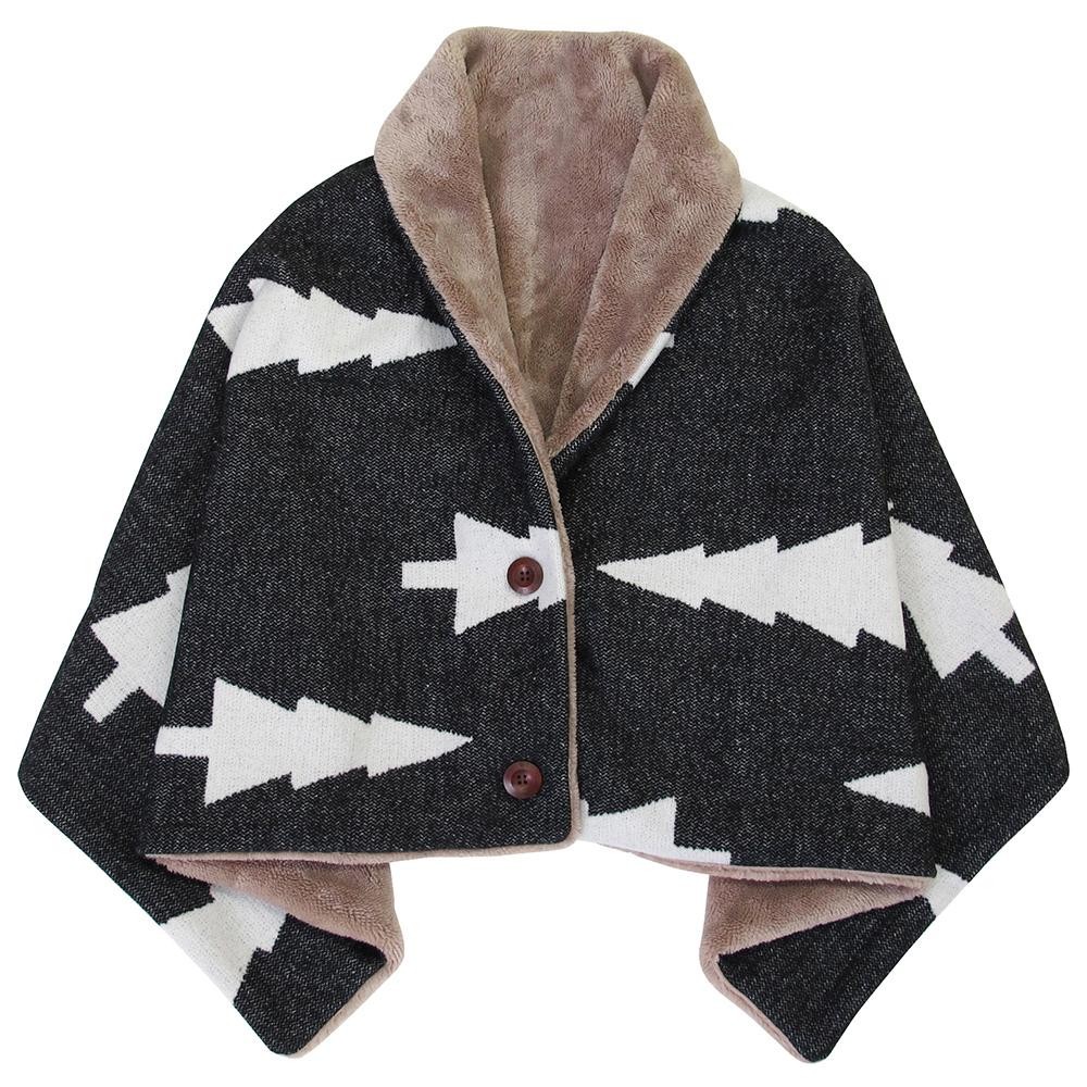 | 表面にはあたたかみのある地厚な生地、裏面は保温性抜群の生地を使用しました。ひざかけ・ポンチョ・スカート風と3WAYで使用できるブランケットです。 |