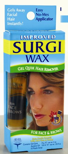 ReleaseDate : 2008-01-28 Studio : Surgi-wax Publisher : Surgi-wax Binding : Health and Beauty Product Description This portable Gel-Quik Hair Remover goes everywhere you do to quickly remove hair from face and brows. Keep it in your desk, purse, or gym bag. The precise applicator tip makes it easy to remove hair that's right along the lip line and to get that perfect brow. Formulated with Maple Honey to firmly grasp each hair and soothing Aloe Vera for a more gentle hair removal process. As our bonus to you, we have included a Free Azulene Oil to further calm and soothe skin after hair removal. Contains Gel-Quik (14 g net wt .5 oz), Azulene Oil, 10 Muslin Strips 0
