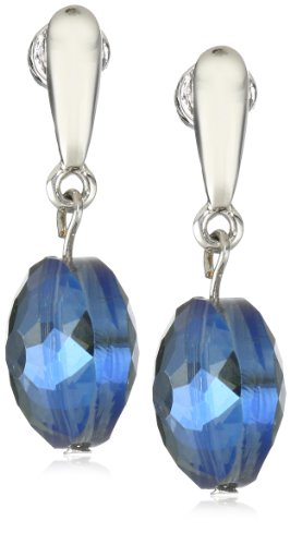 • Blue faceted round bead drop, silver tone detail at post