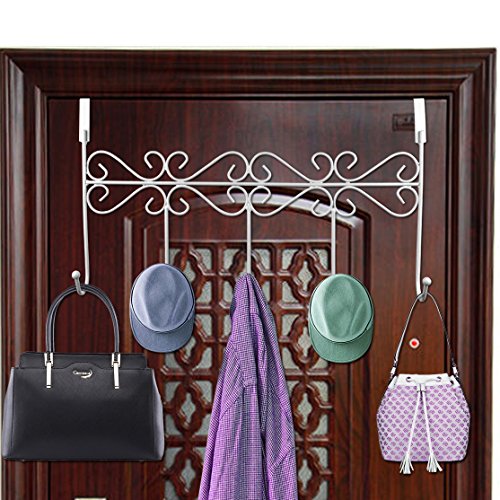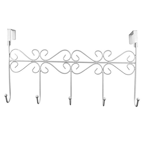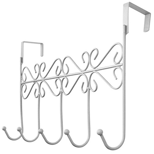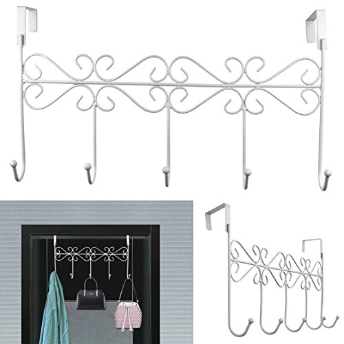 Rbenxia Over the Door 5 Hanger Rack Decorative Metal Hanger Holder for Home Office Use, White