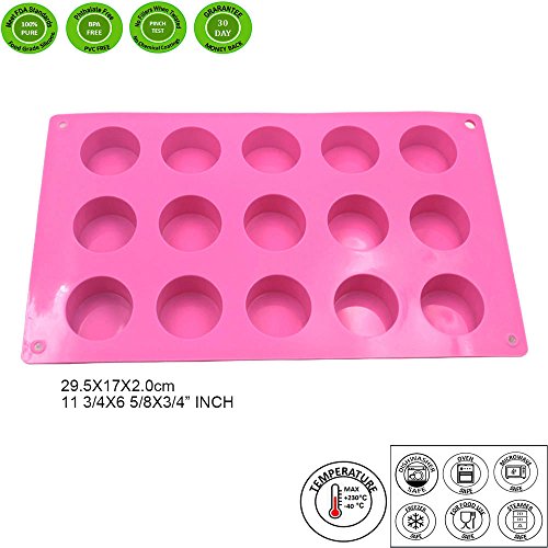 15 Cavity Ice Cube Tray Silicone Molds Muffin Pan Chocolate Mold Silicone Cake Mold Muffine silicone Mold Round Soap Mold,Set of 2