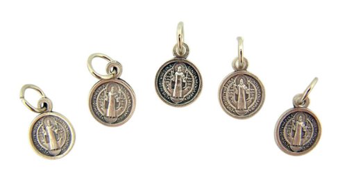 Lot of 5 Saint St Benedict Medal 1/2 Inch Silver Tone Evil Protection Charm